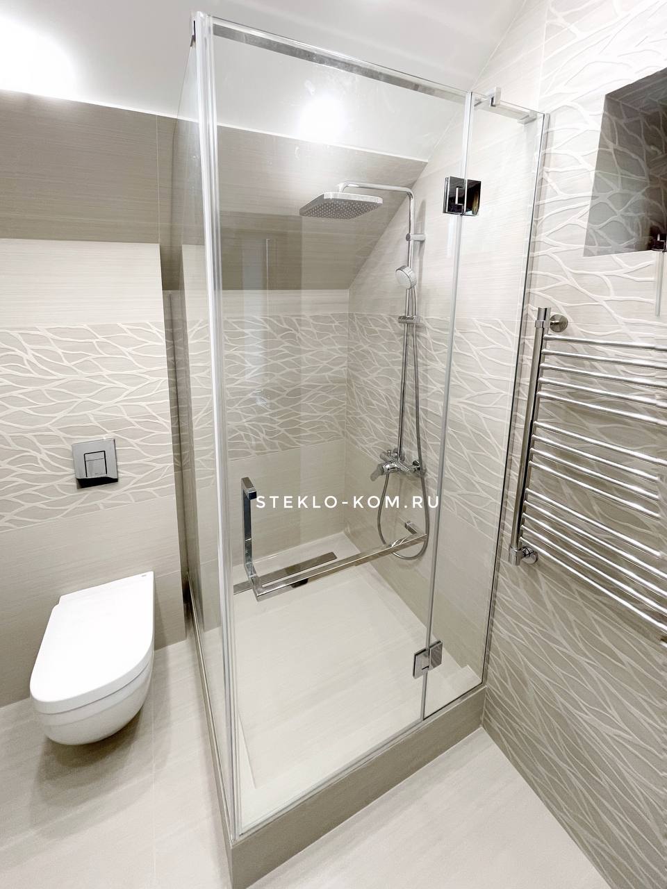 Стеклянная угловая душевая для просторной ванной комнаты, изготовление на заказ от 10 рабочих дней. Закалённое стекло, выбор фурнитуры и типа открывания. Подходит для установки на поддон или в уровень пола. Если стандартные размеры не подходят, просто добавьте товар в корзину — это не обязывает к оплате. Мы свяжемся с вами и предложим индивидуальное решение с расчётом стоимости..