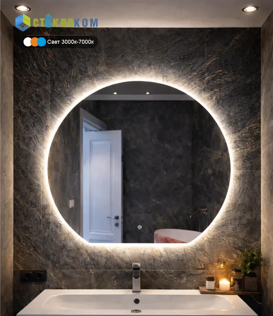 Фигурное зеркало с подсветкой «Тина» — это современная модель с оригинальной геометрией круга со срезанным нижним краем. Такая форма сочетает плавную окружность и аккуратное прямое основание, благодаря чему зеркало выглядит легче и гармонично размещается над раковиной или мебелью. Мягкая LED-подсветка по периметру создаёт комфортное освещение и подчёркивает необычную форму изделия, делая зеркало стильным акцентом в интерьере ванной комнаты, спальни или прихожей.