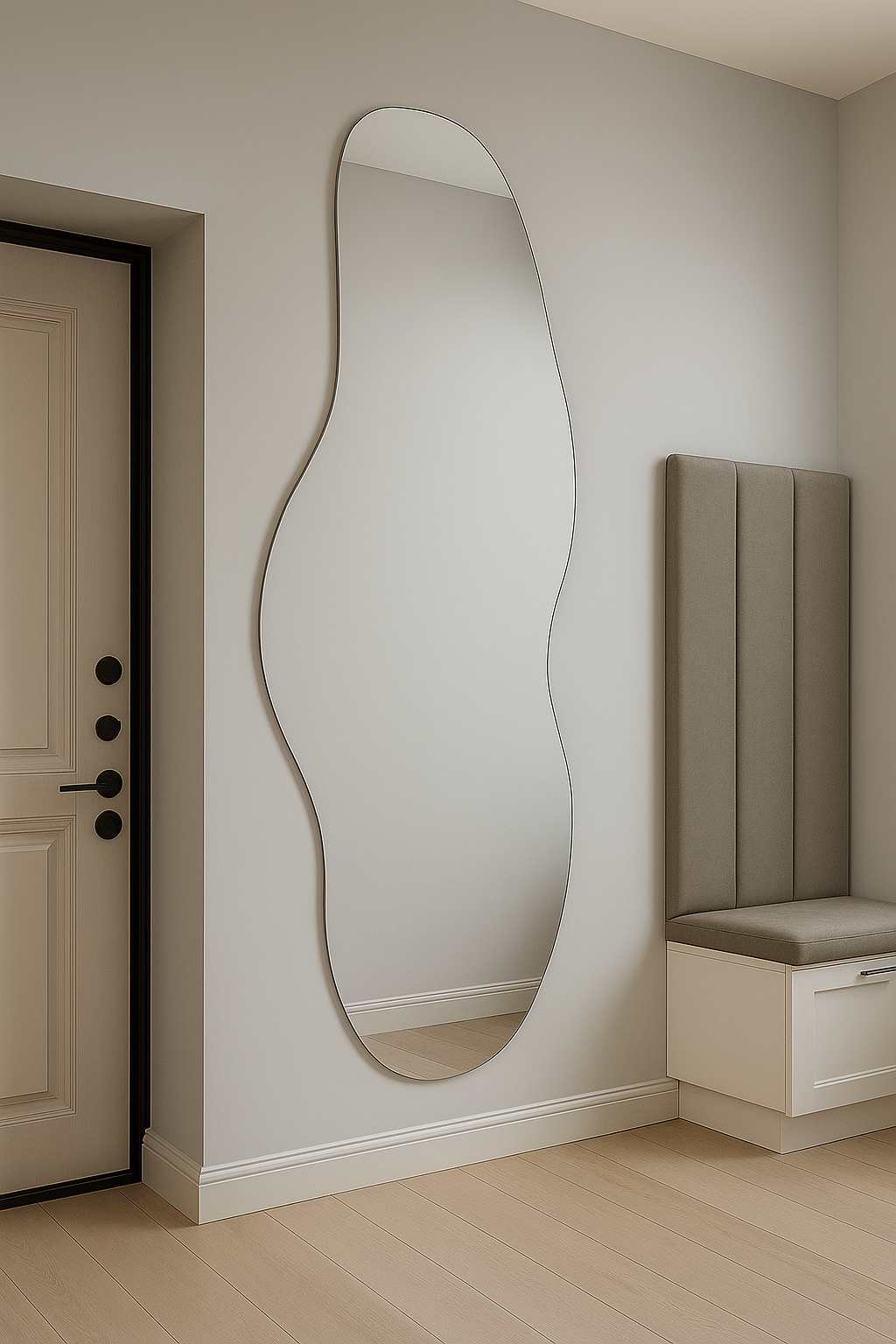 Современное зеркало нестандартной формы с эффектной парящей подсветкой станет стильным акцентом для прихожей, спальни, ванной или гостиной. Благодаря тонкому корпусу и визуальной лёгкости оно отлично впишется в любой интерьер — от минимализма до ар-деко. Полностью индивидуальная работа, вы задаете размеры, мы делаем отрисовку согласно вашему заданию. Любые формы, капле видные, ассиметричные, кляксы, и много другое.