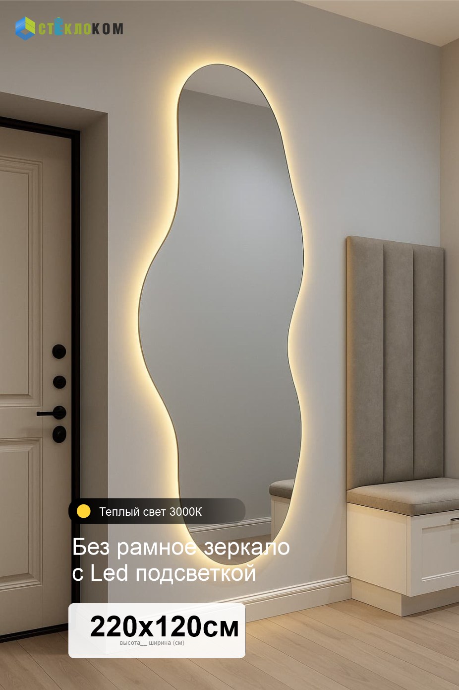 Фигурное зеркало с подсветкой неправильной формы