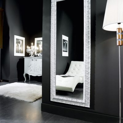Зеркало с подсветкой в спальню в черной рамке nelson