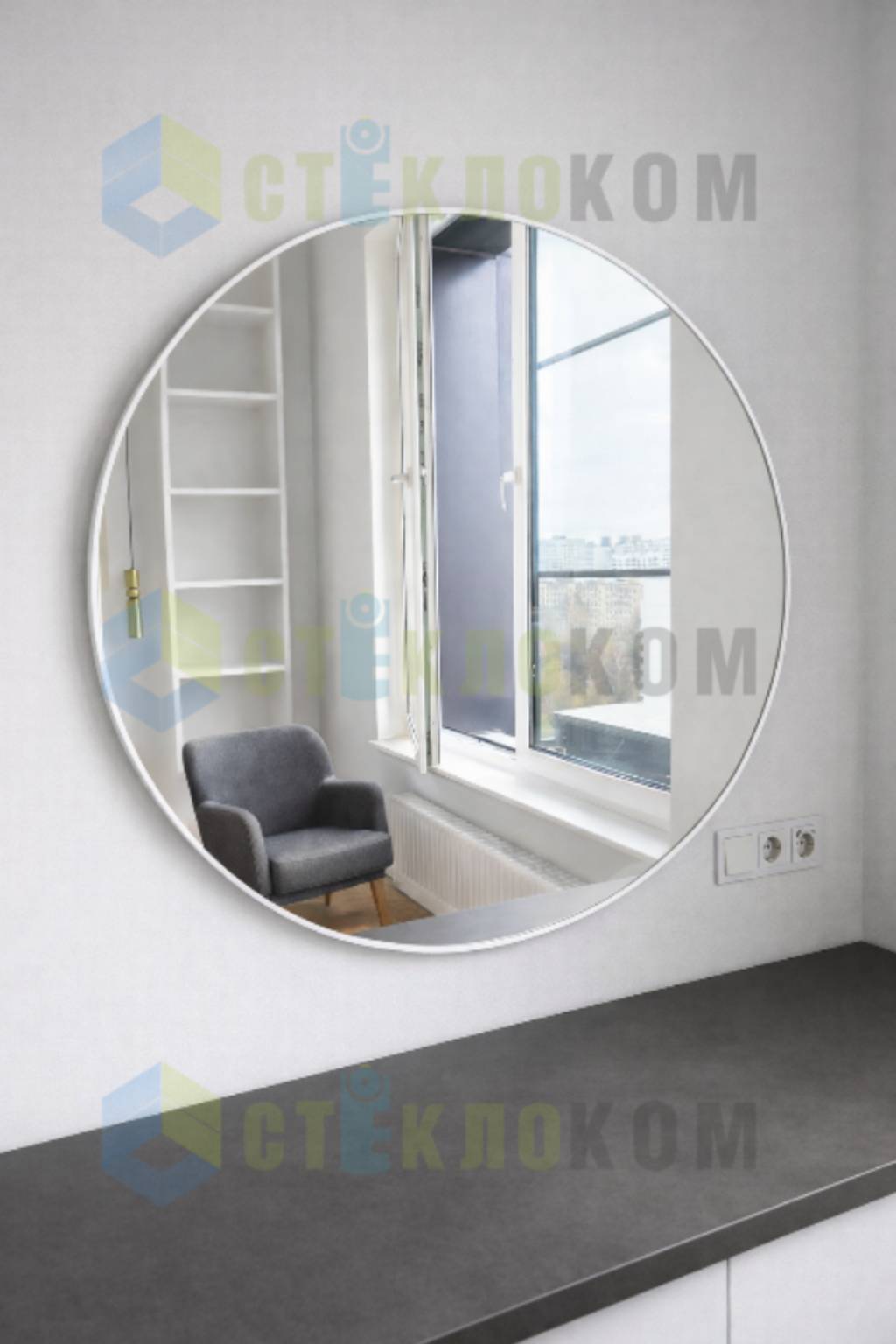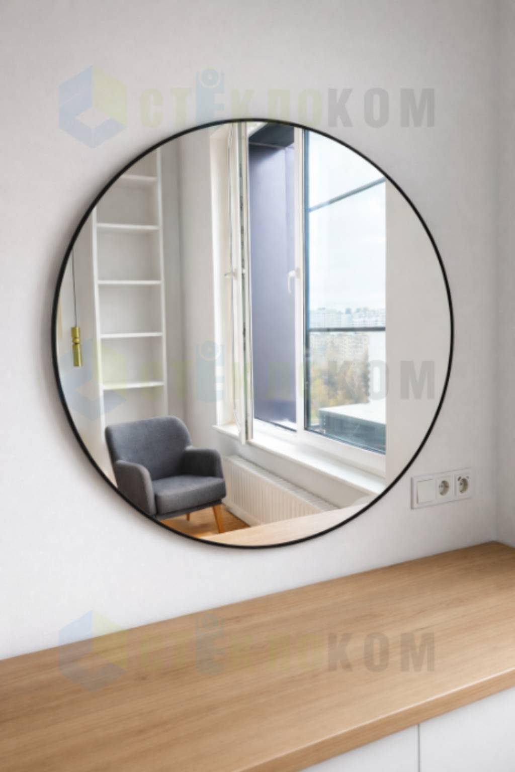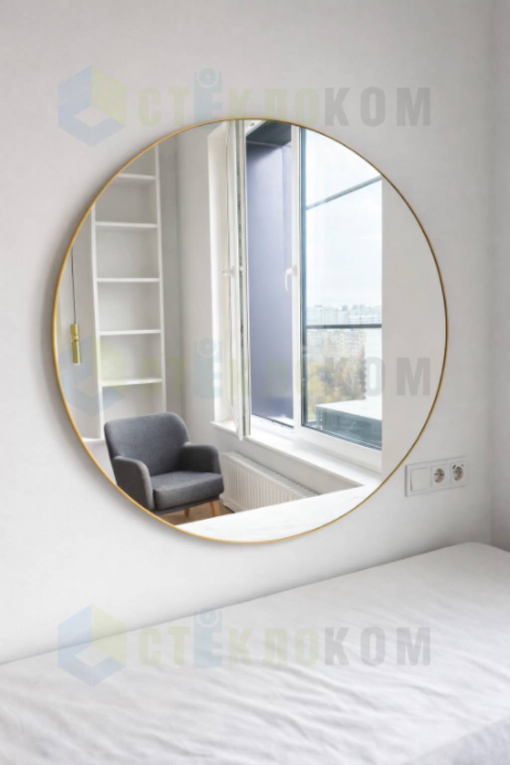 Круглое настенное зеркало в ультратонкой рамке 2 мм — визуально рамка почти незаметна и выглядит как единое целое с зеркалом. Установка производится путём приклеивания к стене, без навесного крепежа. В одной карточке доступны размеры 50–100 см, также возможно изготовление зеркала любого диаметра на заказ. По желанию доступна установка подсветки.