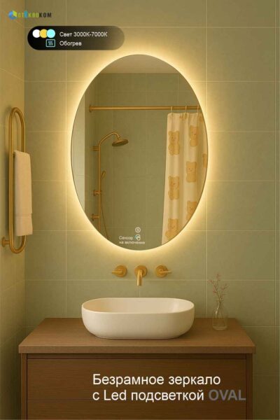 Парящее овальное зеркало «Oval» для интерьера ванной