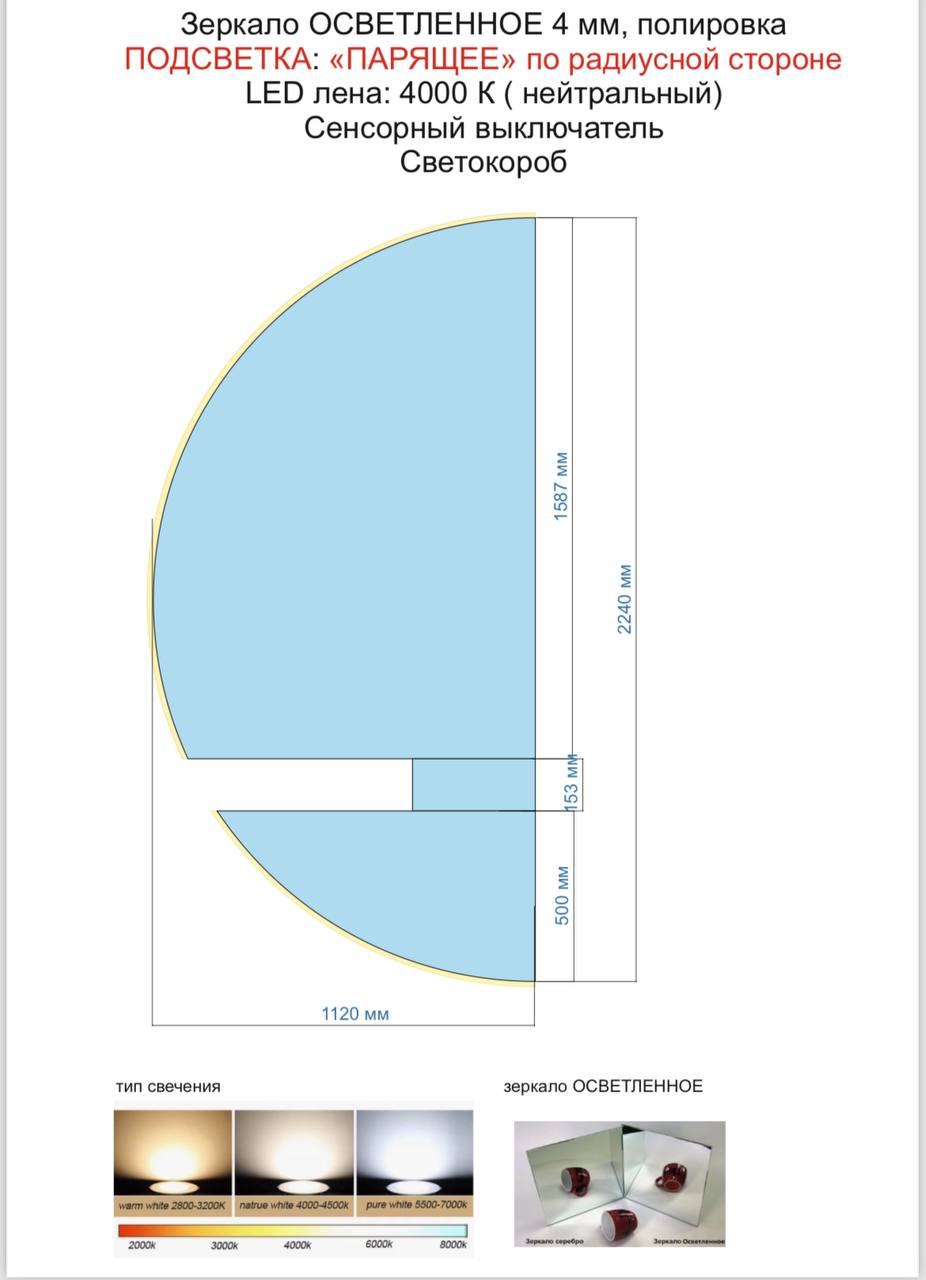 Добавьте современный штрих в ваш интерьер с нашим стильным полукруглым зеркалом с подсветкой, идеально подходящее для спальни, ванной комнаты или прихожей. Мы изготовим зеркало любого размера с учетом ваших пожеланий, обеспечивая высокое качество и стильный дизайн.