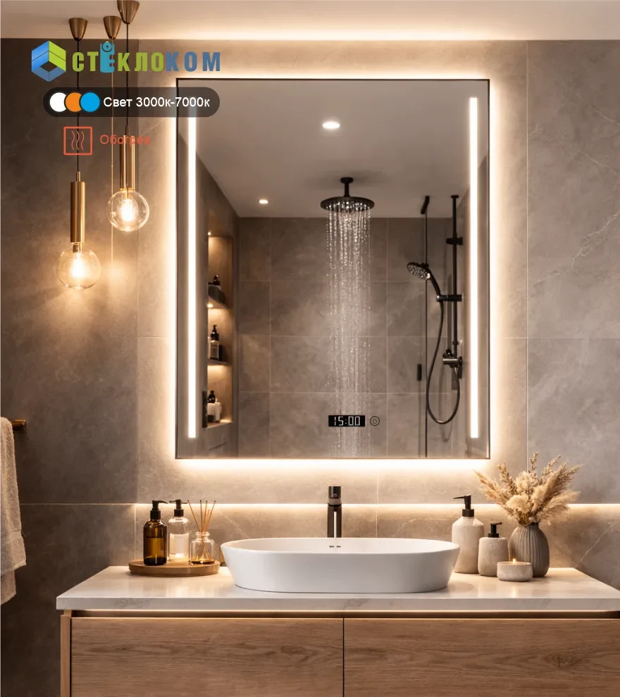 Встроенные часы помогают контролировать время утром или вечером, что особенно удобно во время сборов на работу или перед выходом из дома. Благодаря лаконичному дизайну зеркало гармонично вписывается в современные интерьеры — от минимализма до скандинавского стиля.