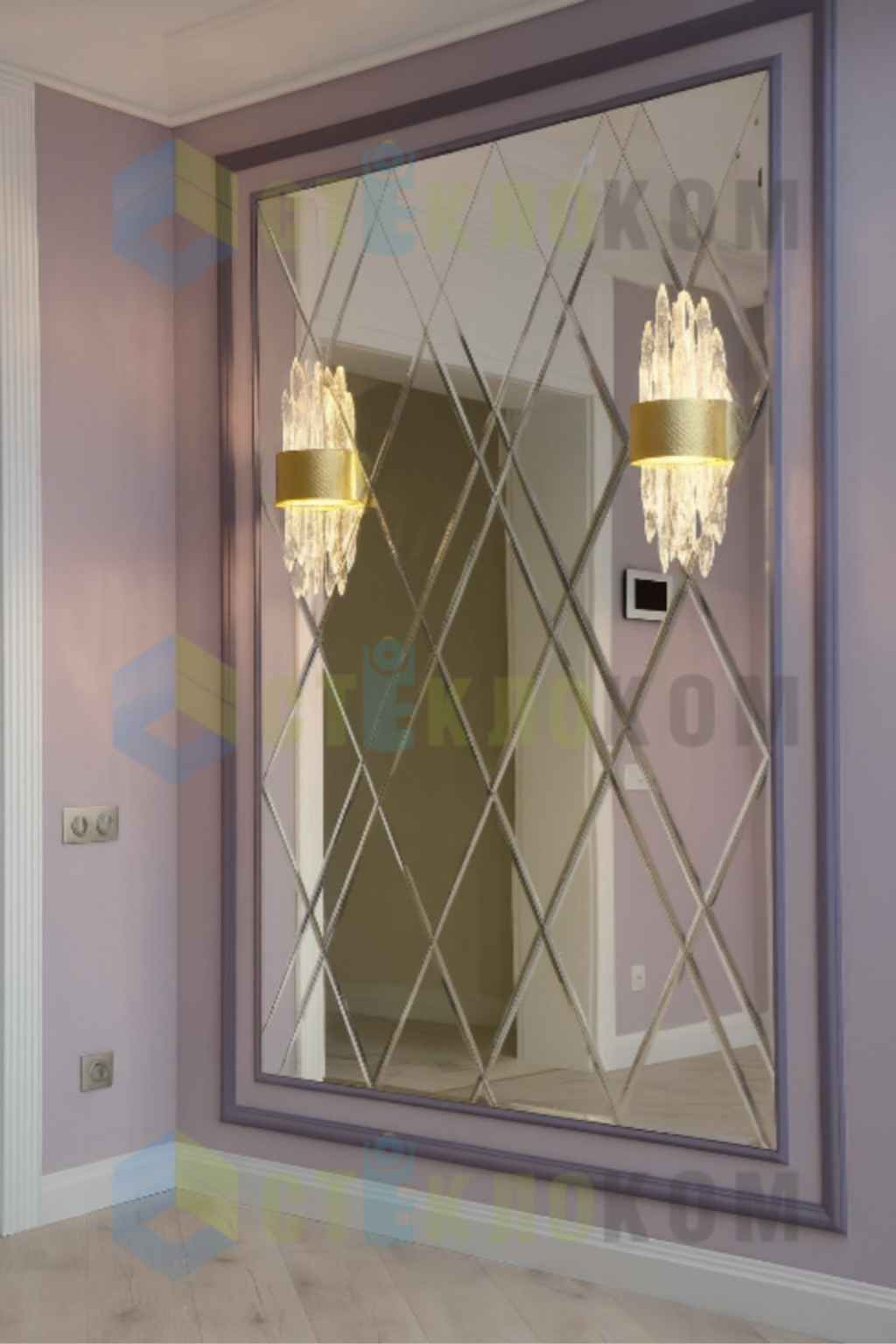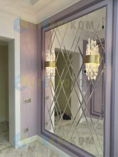 Перед вами реальное зеркальное панно, выполненное нашей мастерской на заказ. Мы изготавливаем панно индивидуально — под ваши размеры, задачу и стиль интерьера. Стоимость рассчитывается персонально, исходя из габаритов, вида зеркала и выбранного дизайна.