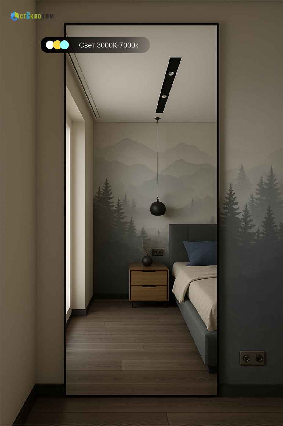 Зеркало с подсветкой в спальню в черной рамке nelson