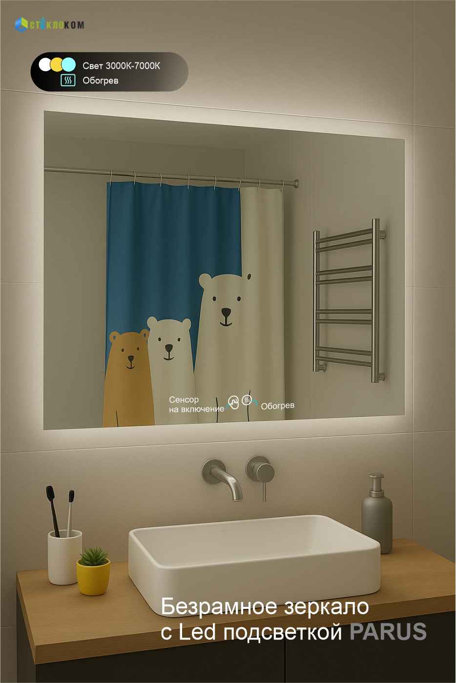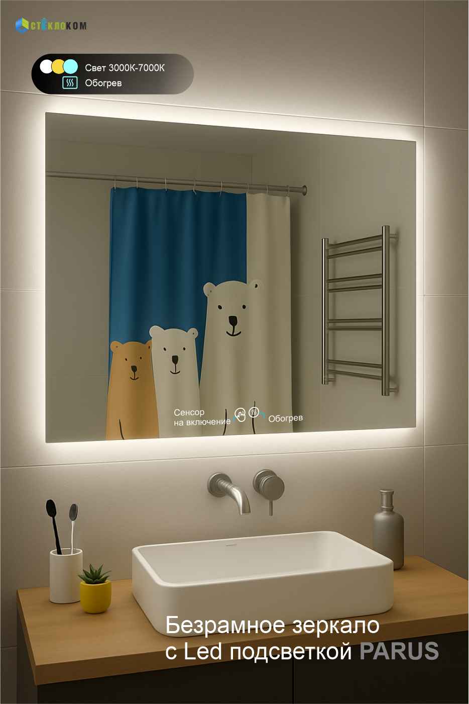 Зеркало в ванную с подсветкой и подогревом Parus — стиль и комфорт