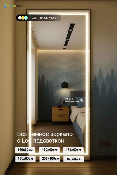 В основе — зеркала отечественного производства Mirox 3, соответствующие стандартам для влажных помещений, и высококачественные LED-элементы брендов SWG и GLS, обеспечивающие долговечность и стабильный свет.Подберите оптимальный размер в нашем онлайн-калькуляторе. При заказе зеркала с подсветкой через сайт — скидка 10% и быстрая доставка по Москве и области
