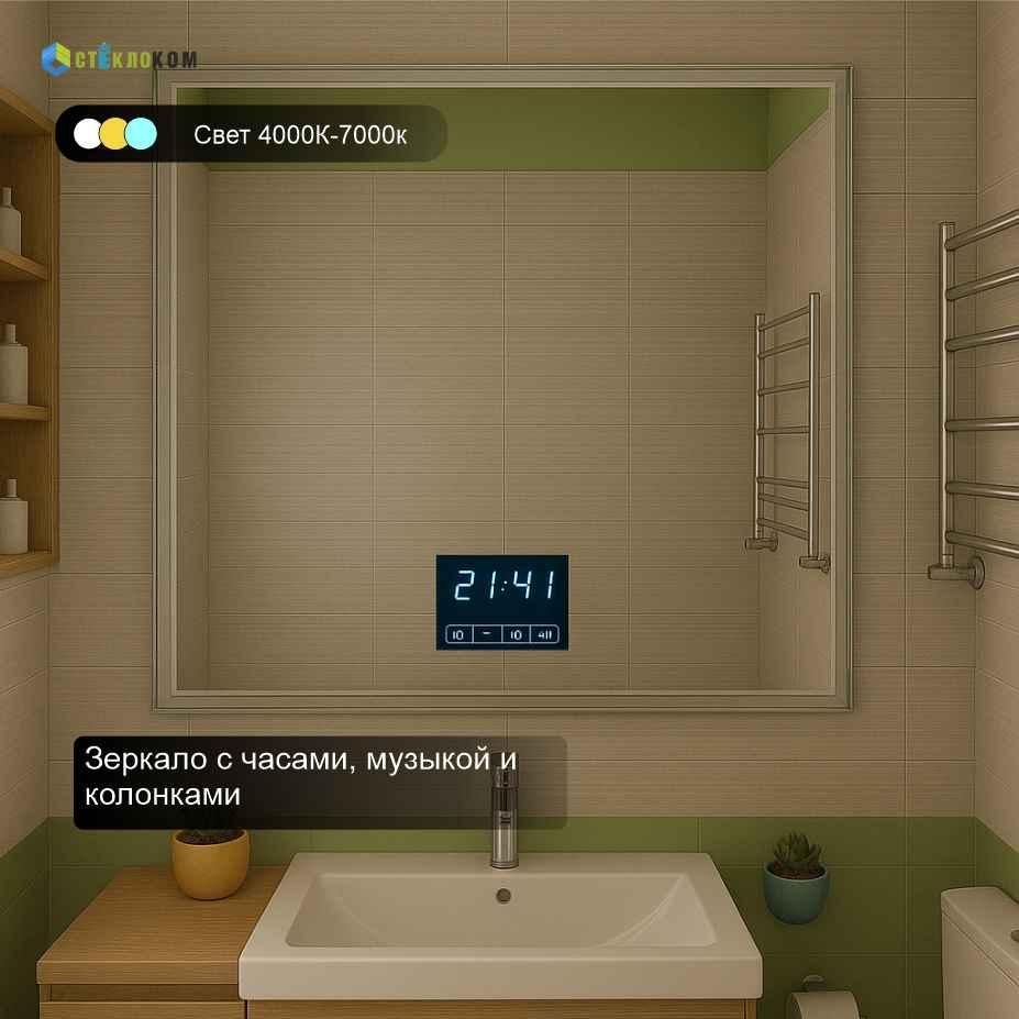 Зеркало с лицевой подсветкой, музыкой, часами и Bluetooth