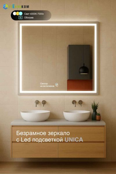 Зеркало UNICA с подсветкой и подогревом для ванной ультратонкое