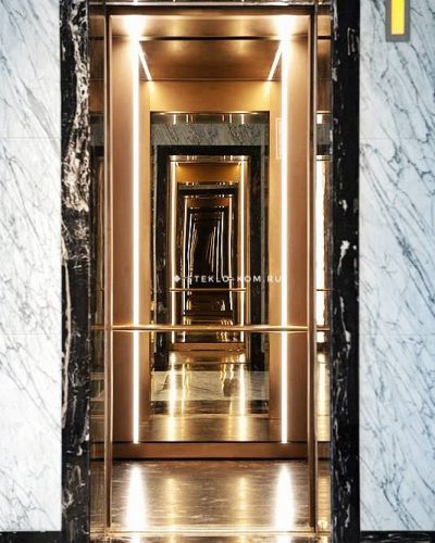 Зеркало в лифт с золотым теснением