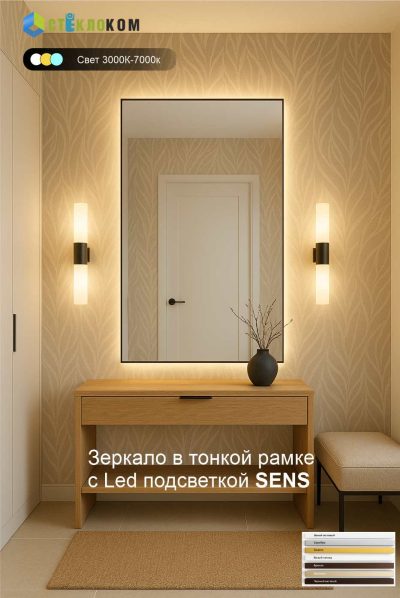 Наше зеркало в рамке с элегантной подсветкой модели Sens создано, чтобы преобразить именно ваше пространство. Оно станет ключевым элементом декора, источником идеального света и функциональным акцентом в любой комнате.